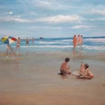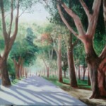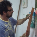 “Gosto muito do estilo abstrato, para além das paisagens disponíveis aqui no litoral. Eu olho a tela assim e, às vezes, dá um branco, não sai nada, porque a tela é branca. Aí penso: vou ver o que vou fazer. Pego uma tinta e jogo nela (a tela). E no momento que eu jogo, na primeira pincelada, espatulada, ah, ali tem o vermelho, aí posso colocar o laranja. Pra dar contraste no vermelho coloco um verde… Começo a brincar com as cores e acaba saindo algo”